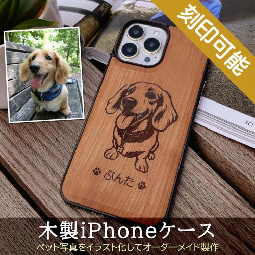 ペット写真イラスト化・木製iPhone・スマホケース   刻印&商品詳細